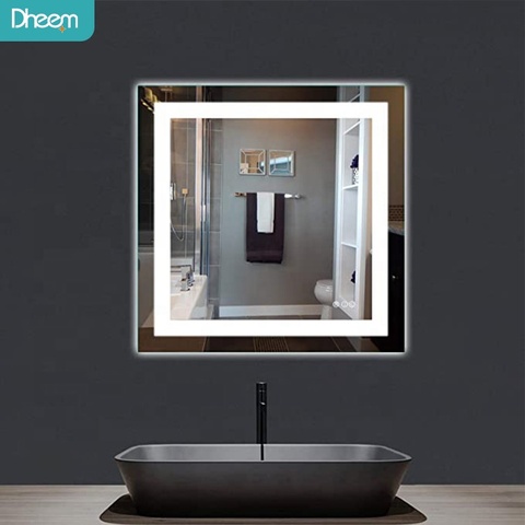 Прямая Продажа с фабрики, квадратное зеркало со светодиодной подсветкой для ванной комнаты с сенсорным экраном